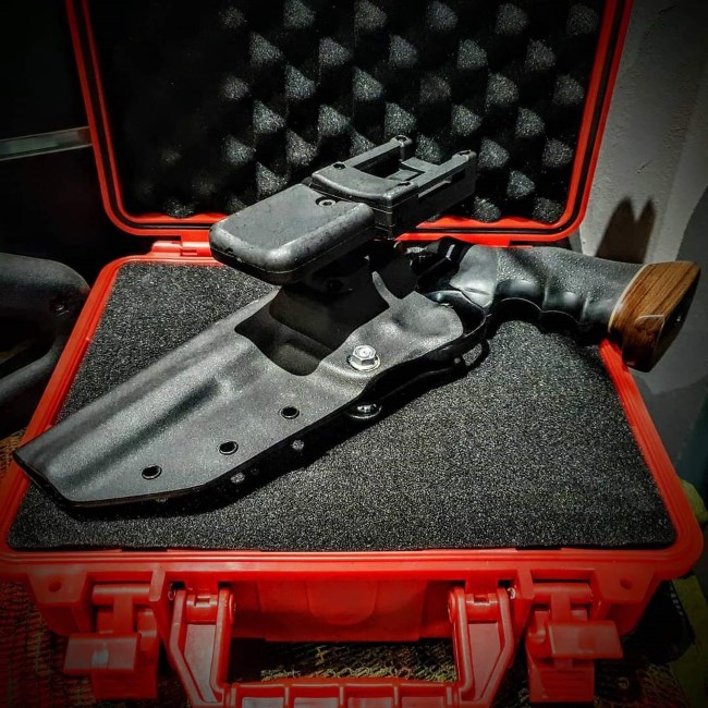 Supongo que se refiere al revolver que aparece en las últimas fotos con la funda.