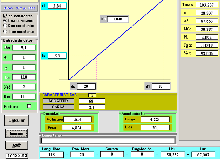 la variable K te dice que esta haciendo una fuerza de 48 Gramos por milimetro , como tiene una precarga de 20 milimitros pues 20x48 .