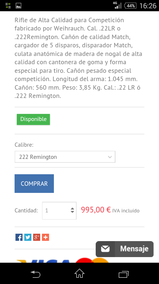 Re: WEIHRAUCH HW 66 MATCH 222REM. REBAJITA