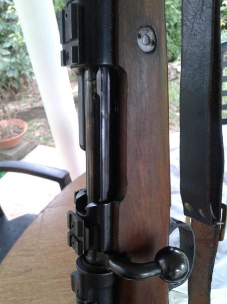 La forma en que se ha doblado el cerrojo tampoco se parece a lo que he visto en originales, además de que en los M43 el cerrojo no está pavonado. Todo lo cual no quita a que sigue siendo un excelente arma.
