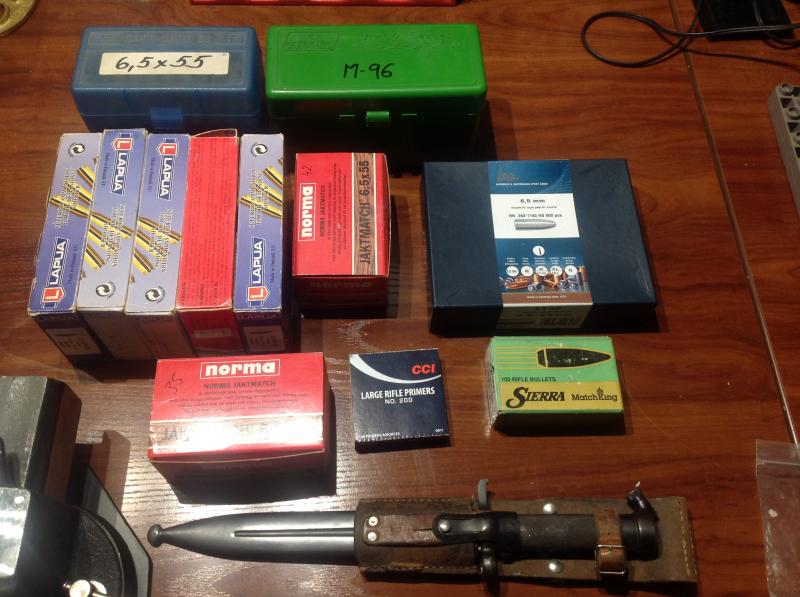 Vendo Carl Gustav M96. El fusil está en muy buen estado y su funcionamiento y precisión excelentes. Todas sus piezas son las originales ya que coinciden en su numeración. El fusil está totalmente equipado para la competición o simplemente para hacer dieces. Se entrega con alza micrometrica, disparador time y (también se entrega el original), cubre punto de mira, bayoneta original, correa original con el sello del ejército sueco, dos cajas para llevar los cartuchos, 215 vainas, herramienta para mover el punto de mira, una caja de puntas RN 140 gn (500 puntas), bocacha apagallamas original (no se suele ver), 4 puntos de mira, chafraneador para el terminado de preparación de las vainas a recargar, bandeja de recarga, bandeja engrasadora de vainas, vuelca pistones, juego de dies Hornady, die de cuello Redding, una caja de puntas Sierra Match King, y alguna cosilla más.