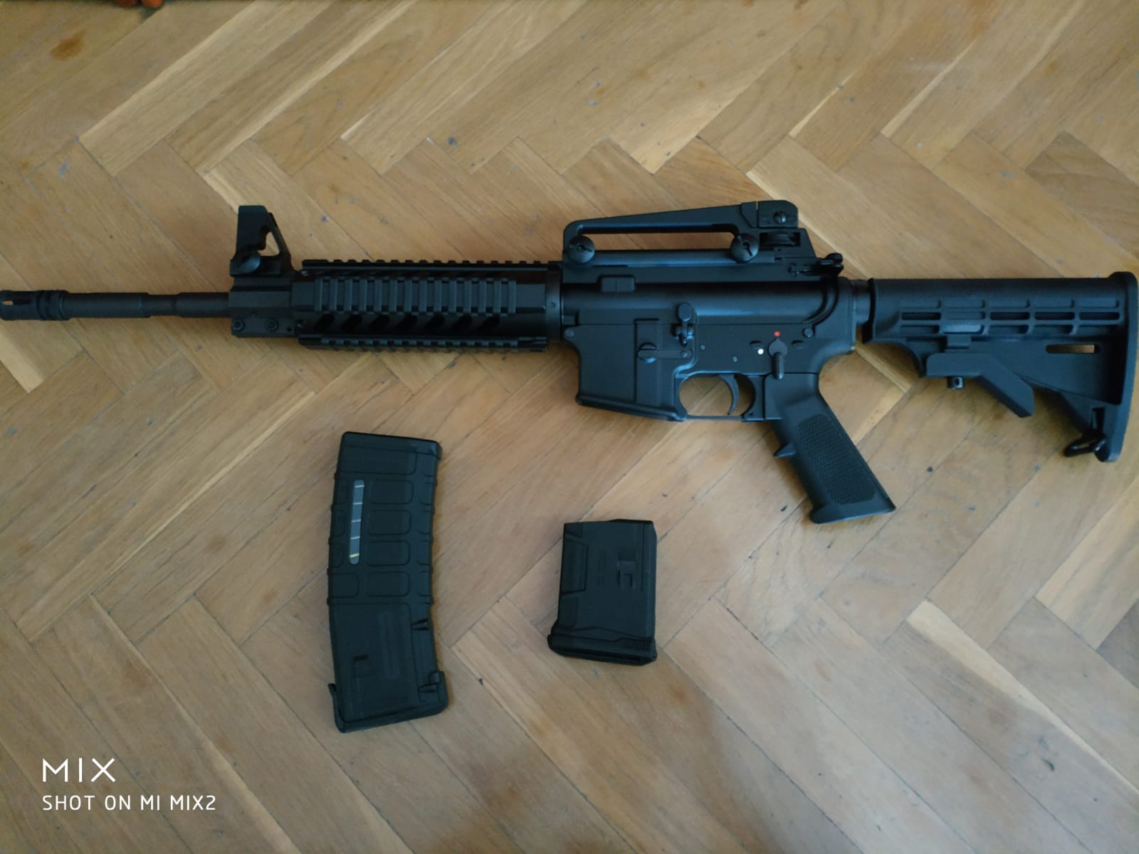 Mi hermano pone a la venta su joyita, una réplica de un M4 de la marca luvo firearms modelo LA-15, en calibre .222 rem, no le da uso y por eso lo pone a la venta( muy a mi pesar) su estado es excepcional, muy muy preciso y precioso. Con culata retráctil. Dos cargadores, manual de usuario, paquete de limpieza original.