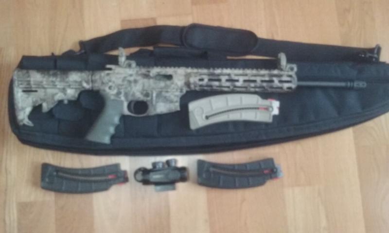 La carabina va con su caja original, tres cargadores, un candado y un pistolete de goma Hogue más el suyo de origen.