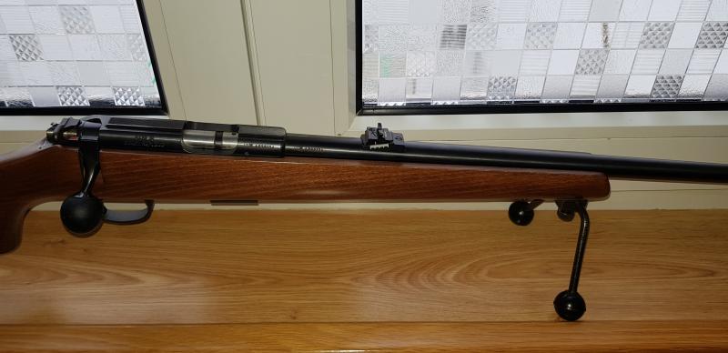 ES UNA CARABINA DEL 22 LR, CON CAÑON DE 12 ESTRIAS PARA CENTRAR MEJOR EL PROYECTIL, DE CERROJO CON CARGADOR DE 5 PROYECTILES, MUY PRECISA, CAÑON INTRECAMBIABLE CON DOS TORNILLOS, GATILLO QUE SE LE ACABA DE INSTALAR SUPER FINO DE 0,5 KGR, MUY NUEVA, LA CARABINA TIENE POQUISIMO USO, MENOS DE 2000 DISPAROS.
