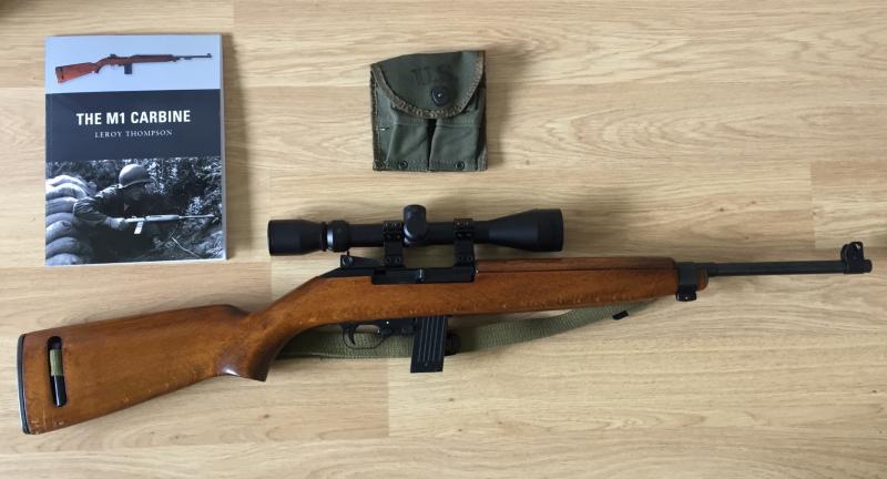 En muy buen estado, con mira telescopica, cinta militar, y de regalo un libro americano de la M1 y un porta cargadores de cinturon.