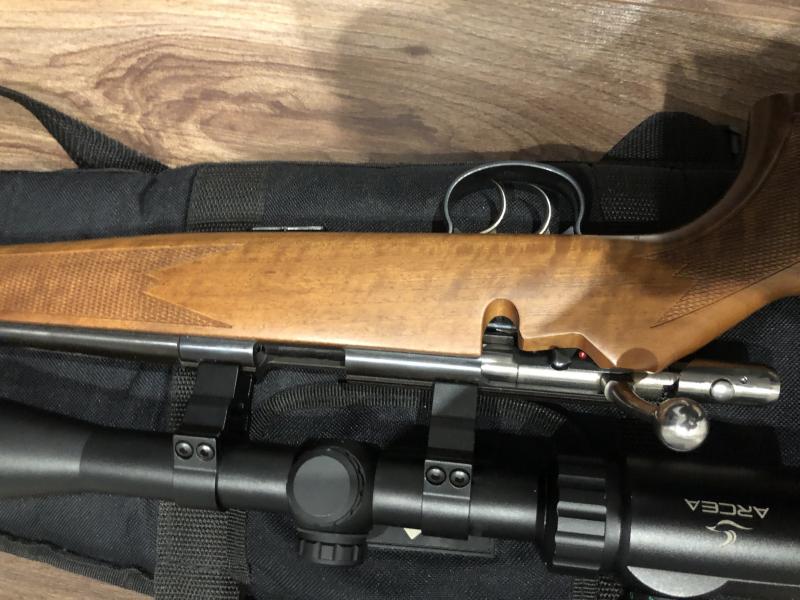 Anschütz 1415-16 22lr en perfecto estado por no decir como nueva, con gatillo al pelo, tiene una precisión magnifica, las maderas como el metal están perfectas. Soy el segundo dueño, comprada a un amigo que no la utilizó. Lleva montada un visor Arcea 6-24x40 y unas monturas Walther. La quito por cambiarme de campo de tiro y ahora tirar con calibre mayor.