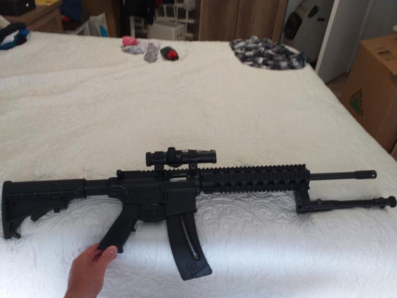 Se vende carabina en perfecto estado, incluye punto rojo Bushnell, bipode UTG, dos cargadores. Se entrega en su caja de cartón original.