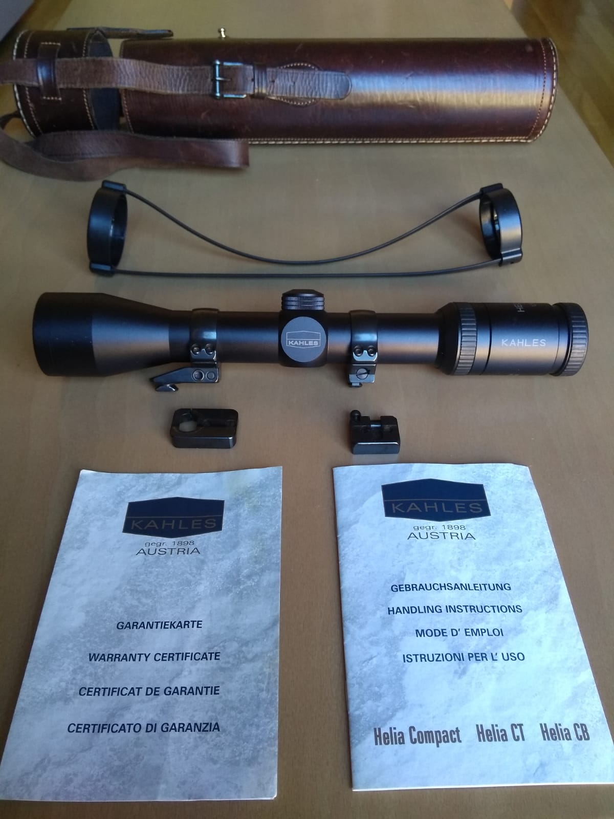 Se vende mira KAHLES HELIA C 1,5-6x42, como sabéis es segunda marca de Swa y tiene una nitidez y claridad increíbles, en las fotos también se aprecia que la mira esta perfecta, no tiene ni un solo arañazo, con sus protectores de ocular y papeles de garantía. Lleva monturas Apel desmontables y bases para Browning FN, con el conjunto se regalaría también el tubo artesanal de cuero para transportar el visor y evitar golpes.