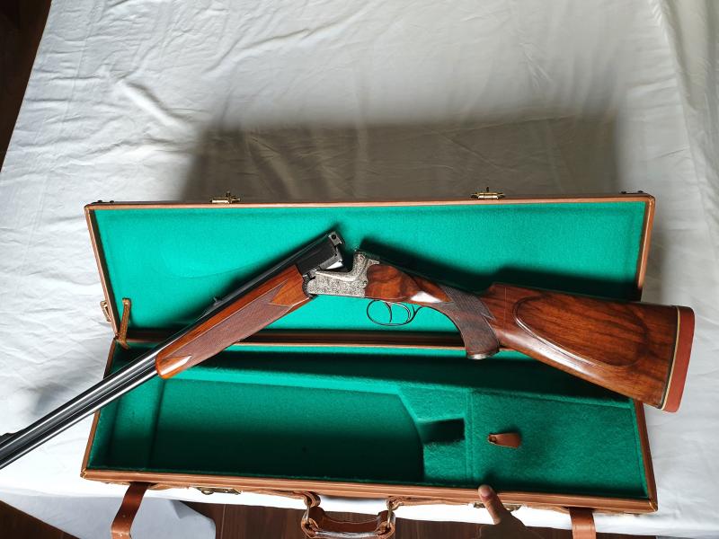 Pongo a la venta un rifle muy especial y creo que puede ser único o existen muy pocos, es un express superpuesto Victor Sarrasqueta calibre 9,3x74R , preciosos grabados florales con guardamontes y chapa pistolet labrados, maderas de nogal , indicadores de carga, maletin de piel a medida, un rifle muy bueno y manejable, súper efectivo para monterias en tiros rapidos de cortadero, calibre ideal para dejar en el sitio a jabalí venados o cualquier animal de nuestra fauna, no se ha cazado nunca con el, proviene de una colección, pongo unas fotos haber si os gusta, precio de venta 5500€. Un saludo gracias.
