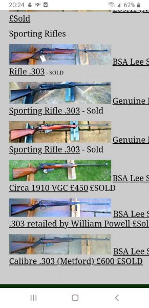SI es Usted un " fan " de BSA, mientras aparece su .303 British le sugeriero considerar mi .22 LR vintage modelo Sportsman