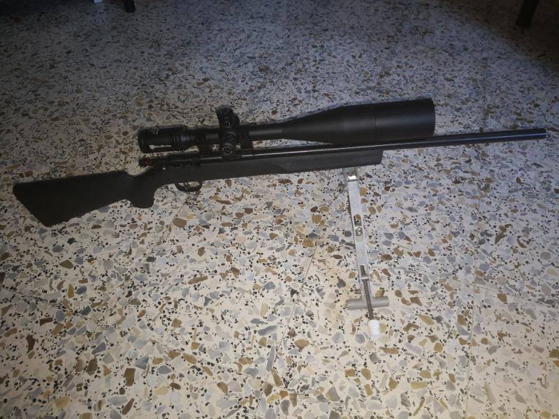 -Carabina Marlin 22LR de cañon pesado flotante, con bipode, visor Niko Stirling 10-50x60 y maleta semirrígida Gherman. Preparada para iniciarse en el Fclass. Guiada con la E.
