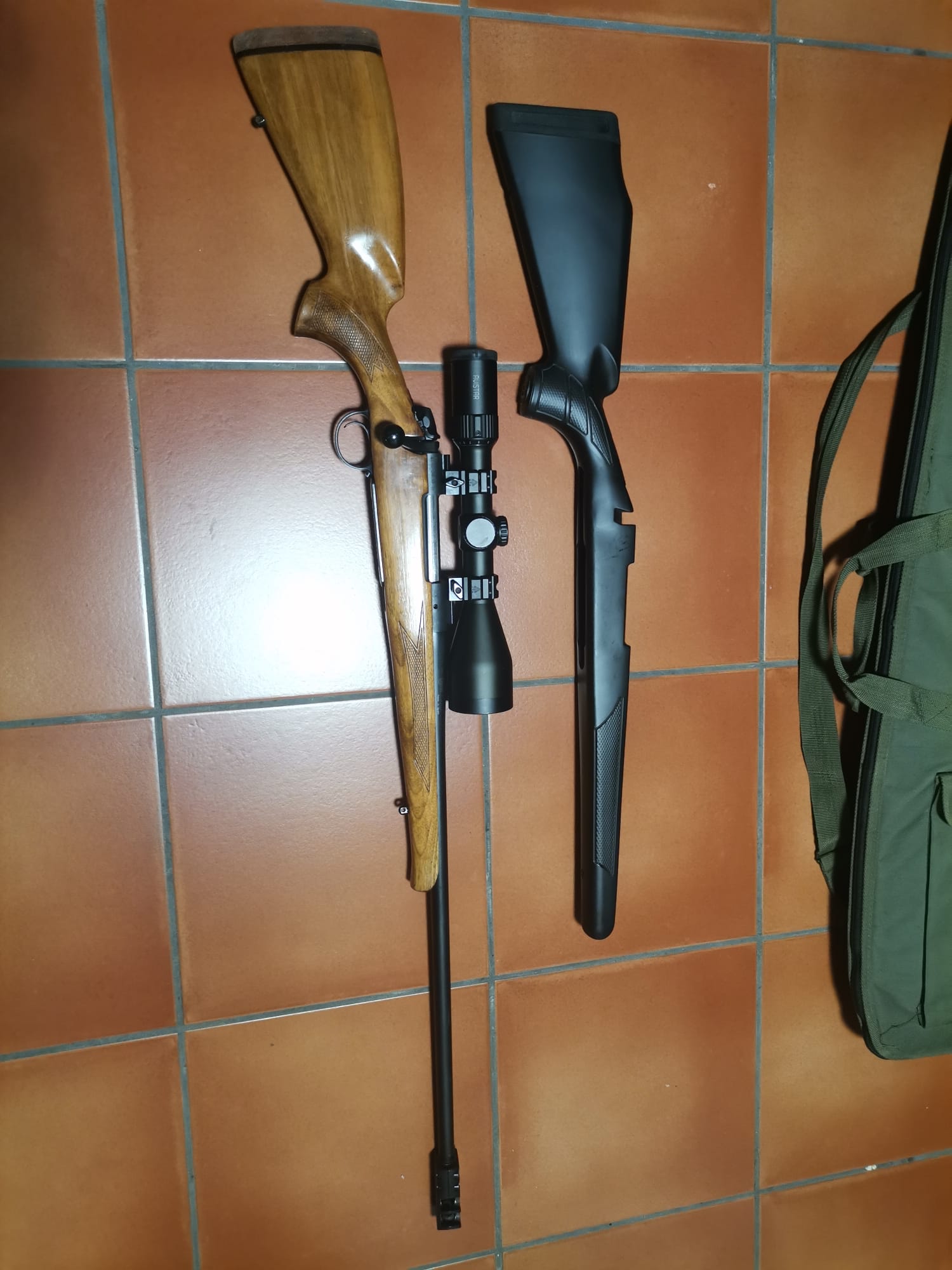 Dos culatas, sintético y de nogal hecha por un artesano.