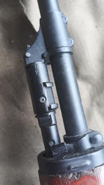 y esta pieza es para cuando el dragunov esta muy sucio se gira la primera pieza para dejar abiertos lo orificios del alojamiento del piston (los orificios de la parte cromada)