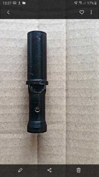 Pongo 2 fotografias para ver la diferencia entre el regulador de gases original (que tiene orificios delanteros que son los que se tapan y destapan para realizar la funcion de regulación y orificios traseros que son para ventilar los gases una vez el piston se ha movido) y el tubo de gases que llevan los Dragunov civiles cuando no llevan regulador de gases (en este ultimo caso, es un tubo fijo, q solo cuenta con los orificios traseros de ventilacion)