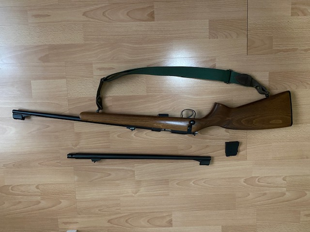 Es CZ 455 calibre17hmr y cañon intercambiable 22 lr, guiado en D