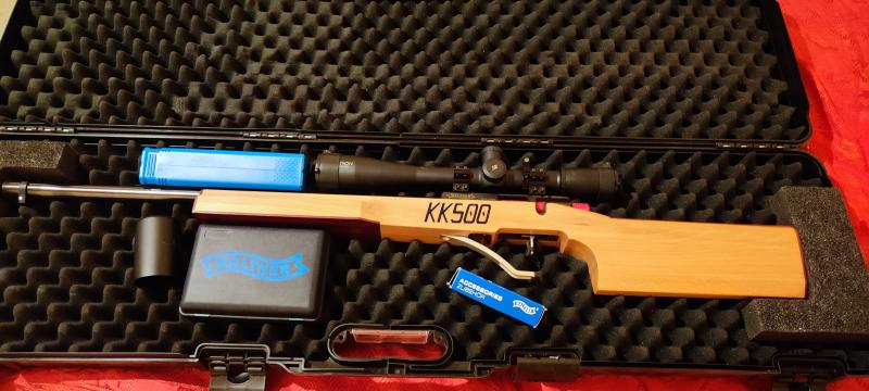 Vendo carabina del 22 lr mod. walther kk500 blacktec esta prácticamente nueva creo que la he llevado 2 o 3 veces al campo de tiro, la carabina se vende con dos culatas una especifica BR50 y la original, incluye maletín, accesorios, diopter y túnel, también la entrego con un prolongador de cañon STARIK carbon tube de 19 cm. y si la entrega se hace en mano regalo una caja de munición para probarla. el visor y las anillas no están incluidos aunque se puede vender a mayores es un sightron ED 45 X 45 competición reticula fina.