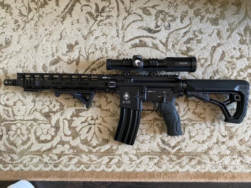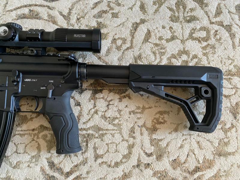 Vendo AR-15 ADC en 12,5 pulgadas del calibre .222. Muy pequeñito con la culata recogida. Se encuentra en Badajoz. Se entrega con cargador limitado según legislación. Visor AVISTAR con retícula iluminada 1-4x24 comprado nuevo por mí también (se entrega su caja original) y con las bases para cogerlo al rail picatinny. Se entrega con cogida de 1 punto. Comprado por mi en tienda TOP GUN; yo soy el primer dueño. 2 años y poco de la compra. No más de 300 disparos. Precio con visor y envío 1450€. Precio no negociable. Si se recoge en mano se descuentan 70e. Precio sin visor 1350e. Mas fotos por privado.
