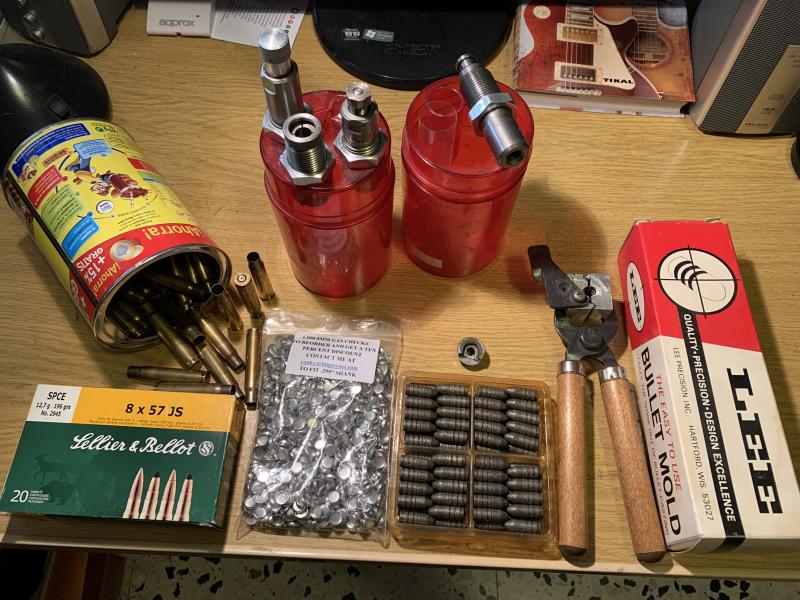 Vendo mi Mauser Kar98 de calibre 8x57JS fabricado en 1943 en la fábrica de Mauser de Oberndorf (Alemania). A pesar de los años que tiene está en perfecto estado de funcionamiento y conservación. También incluyo en el precio un lote para la recarga compuesto por: 60 plomos ya recalibrados y a punto para cargar, 1000 gas checks, 4 balas originales del 8x57 JS, shell holder LEE nº2, Molde Lee 8 mm., recalibrador Lee 8 mm., Dais completos para el 8 mm. y un bote lleno de vainas del 8x57JS solo usadas una vez. Fusil más lote entero lo vendo por 1000€. No rebajo nada y si encuentro más cosas de las que he descrito que estén relacionadas con el rifle también las regalaré pues ya no haré nada de ellas. La correa también la regalo, pero no es original, sólo la he utilizado para tirar con el. También incluyo bayoneta yugoslava que se acopla perfectamente al cañón del rifle y su funda original. Además también entrego el rectificador del punto de mira delantero por si se desea modificarlo lateralmente a gusto del tirador.