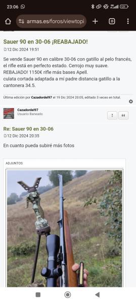 Doy crédito de la buena fé del compañero. A mí me atendió perfectamente y me avisó en todo momento del estado del arma. He desistido de la compra por el tema de la culata, ya que yo necesito 37'5 o 38 para estar cómodo y eso supondría una cantonera excesiva. Para cualquier cazador que mida en torno a los 1,70 puede ser un chollazo, porque el rifle se ve francamente en muy buen estado.