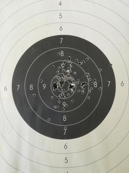 Pongo una diana a 50 m con miras abiertas, los blancos dispersos son de tirar el cargador de 10 seguido.