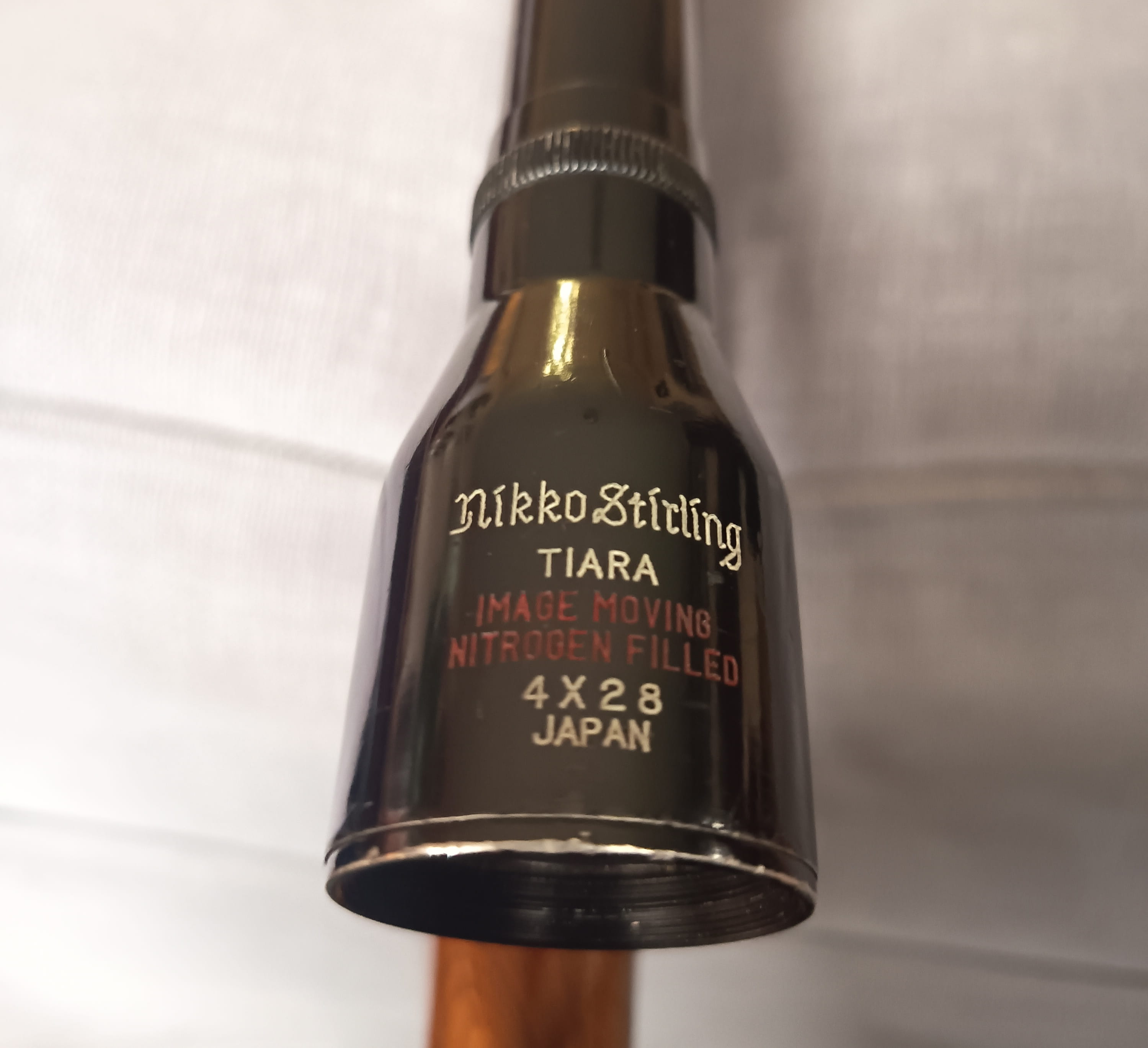 Antigua pero no se ha usado en más de 20 años. Con un golpe en la madera que se aprecia en una fotos. Por lo demás perfecta. Con visor Nikko Stirling 4x28