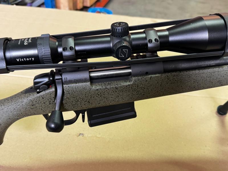 Debido a reorganizacion de armero vendo rifle bergara b14 hunter, en calibre 308 winchester, con muy pocos tiros. Tiene bases weaver, rosca y como extra cargador tipo AICS para 5 cartuchos. Tambien tiene mecanizado en la culata para poner carril para bipode.