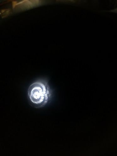 Lo prometido es deuda: las dos primeras (de un total de cuatro) fotos del ánima del cañón, tomadas desde la boca de fuego de la carabina.