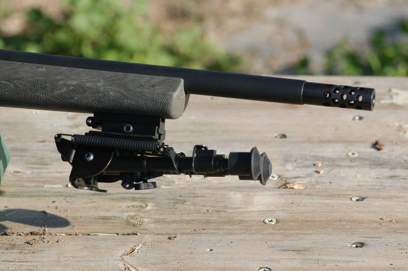 Arriba con el R700 con una nueva foto del bipode colocado en el carril picatinny que la culata lleva en la parte anterior.