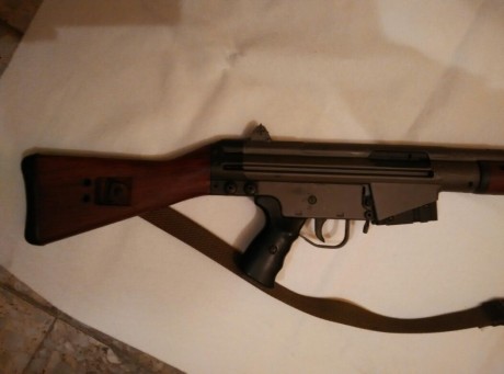 Hola, un amigo vende todas sus armas por enfermedad. En esta caso se trata de un fusil Cetme del calibre .307 W. Está guiado en D y se encuentra en excelente estado, con algunos arañazos producidos al meterlo y sacarlo del armero. Se entrega con su cargador original limitado a 3 tiros, una correa de transporte original y otros accesorios que no salen en las fotos como son: otro cargador de 5 tiros, un cargador de colección de 20 tiros original de G3, un tapabocas también original, un aliviapercutor y una funda. El precio son 450 euros. Se encuentra depositado en la Intervención de Armas de Arganda del Rey y no se envía. Un saludo.