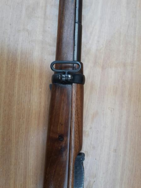 Se trata de un mauser oviedo 1916 recamarado al .308 y con el escudo de la Guardia Civil grabado en la recámara.