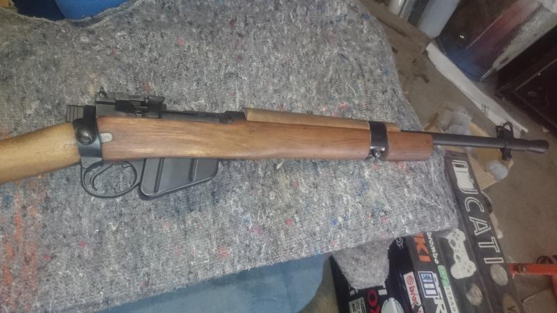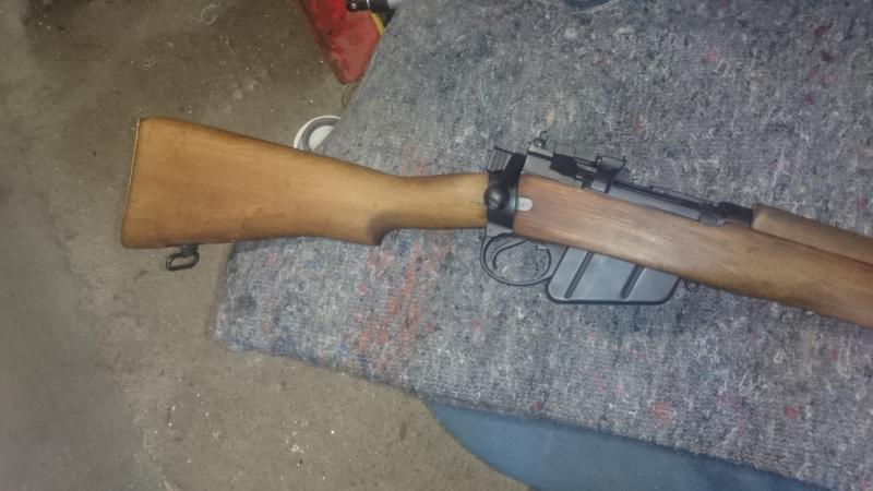 Hola,vuelvo a poner a la venta una carabina enfield nº5 de las fabricadas para el mercado americano a partir de recortar un nº4,esta perfecta de pavon,estriado a espejo y maderas en buen estado,lleva el alza regulable y tambien la fija de librillo,esta en la coruña y el precio ahora 280 euros portes incluidos a peninsula,aceptaria cambio por fusil historico.