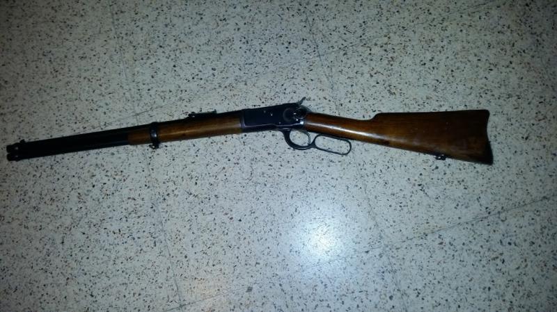 En mi humilde y modesta opinión no es un Winchester por las anillas de la correa que el original no las llevaba; el marcaje del calibre "44 largo" solo se hizo en España, el resto lo han marcado como 44/40 Win. El original no llevaba cajón de respeto en la cantonera, en éste no se aprecia y la tapa del almacén, debajo del cañón y por delante que tampoco se ve, en el original lleva una marca vertical, una hendidura o raya para usar destornillador y desmontarla, que el Tigre no tiene.