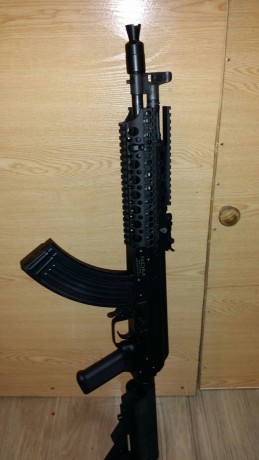 Alza regulable y dispone de un rail en su parte izquierda que permite la posibilidad de instalar cualquier tipo de mira telescópica, punto rojo, etc. Con guardamanos con rail superior para la instalación de visores tipo Propoint de encare rápido. Delantera y culata fabricada en material sintético. Culata telescópica tipo M4.