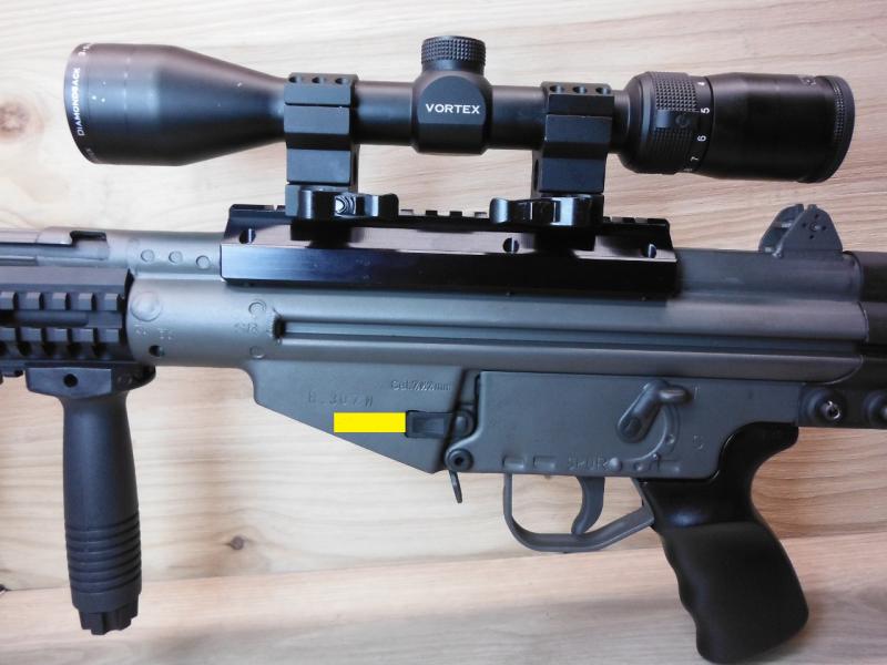 CERRAR---- CETME C SPOR 307W con culata tipo M4 TAPCO mas buffer, guardamano aluminio con carriles para accesorios, grip delantero, montura Santa Barbara, visor Vortex Diamondback 3x9x40 con anillas de desmontaje rápido Burris XTR Xtreme Tactical Rings, culata, guardamano y grip de G3 en color verde, nueve cargadores grandes y dos pequeños, soporte para vehículo o pared para Cetme o G3, 50 vainas nuevas del 307W marca Winchester, dos Shell Holders uno de Hornady y otro de RCBS, piecerio variado de recambio (uña extractora, agujas, portapercutor, martillo, gatillo, palanca liberara cargadores, palanca de montar, buffer original CETME)