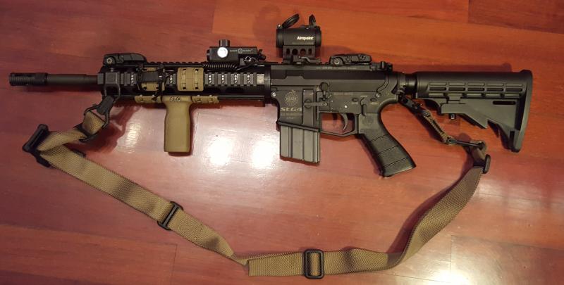 -Correa magpul mgs3 coyote, y adaptadores rapidos para atar en el arma.