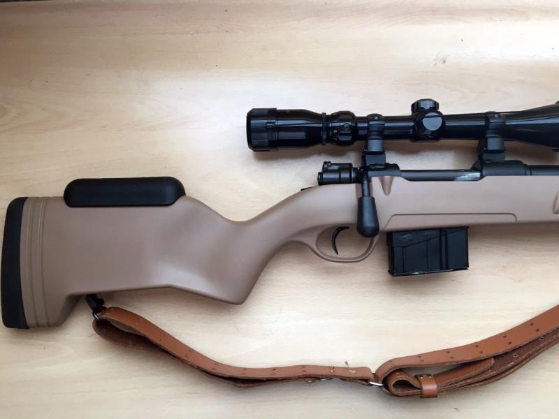 Capricho va, capricho viene. Vendo un FR8...que decir que no sepais!...customizado como lo veis en las fotos. Color arena, deposito de munición fijo de diez cartuchos, bípode, correa cuero, visor Tasco 3-9x40, funda táctica multibolsillos color arena, tapabocachas. Carece de los elementos de puntería originales. Tira de vicio y conmigo tiene un par de monterías.