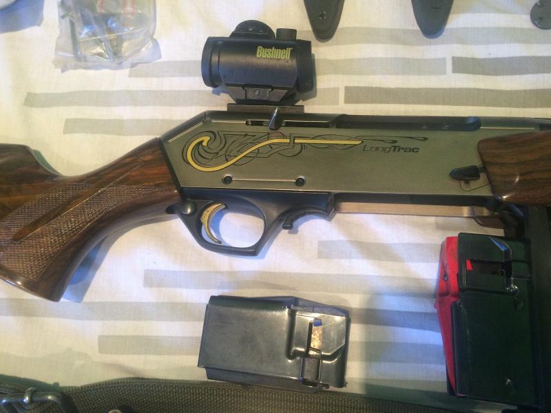 Se vende fn Browning long track modelo new elite con carril para visor holográfico Bushnell con todas sus herramientas de montaje, también incopora dos carragadores uno de 3 i otro de 5 valas, también incopora armero de 3 armas de la marca Infac Safe i 40 valas Norma Vulcan.