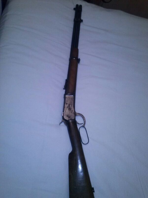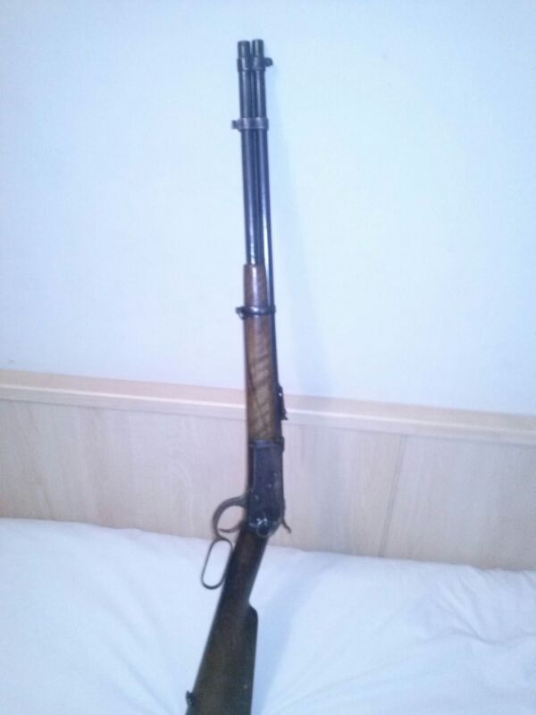 Estos rifles se fabricaron en Eibar bajo licencia de Winchester. Existe una versión modificada, más larga y con algún otro pequeño cambio para no pagar la licencia a Winchester, pero este es bajo licencia.