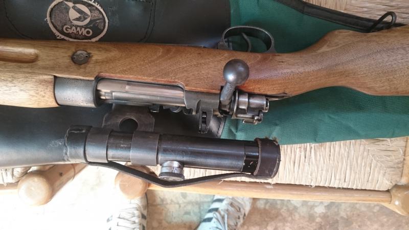 El rifle venía con el cerrojo curvo y sus monturas y visor, pero al participar en tiradas de históricas, le quitó monturas y visor y enderezó la maneta del cerrojo, una vez dejó de darle uso y para proceder a su venta le montó el visor.
