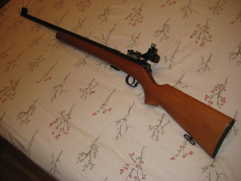 Yo la he estado usando con visor, y monta los dieces a 100 metros. El sábado pasado la pusimos con miras abiertas y lo mismo, con SK rifle match, la de la diana roja.