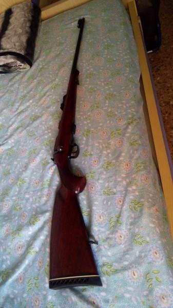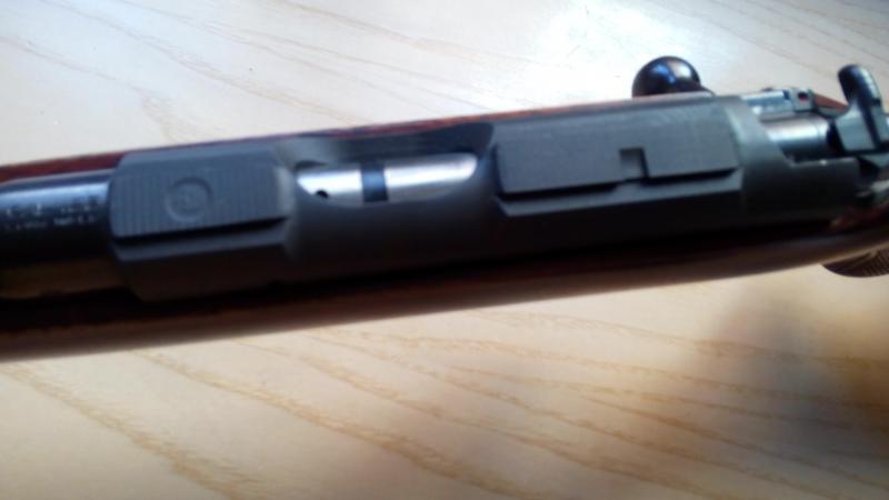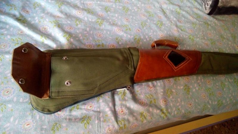 Va dotada de un cargador de cinco cartuchos y una funda hecha a medida de cuero y lona con un bolsillo lateral muy útil para portar documentación,cartuchos,cerrojo,etc...