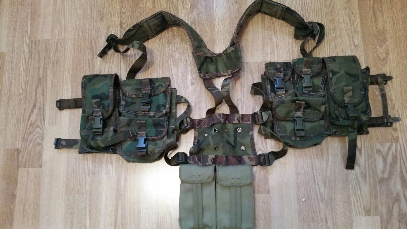 1 –Cartuchera tipo peto de camuflaje, con varios departamentos y bolsillos para cargadores, original ET.