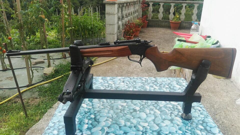 Este modelo tiene dos agujas para poder disparar municion de fuego central y anular solo con cambiar una palanca que trae en el mismo martillo tengo dos adaptadores para tirar 22 lr y 22 wm