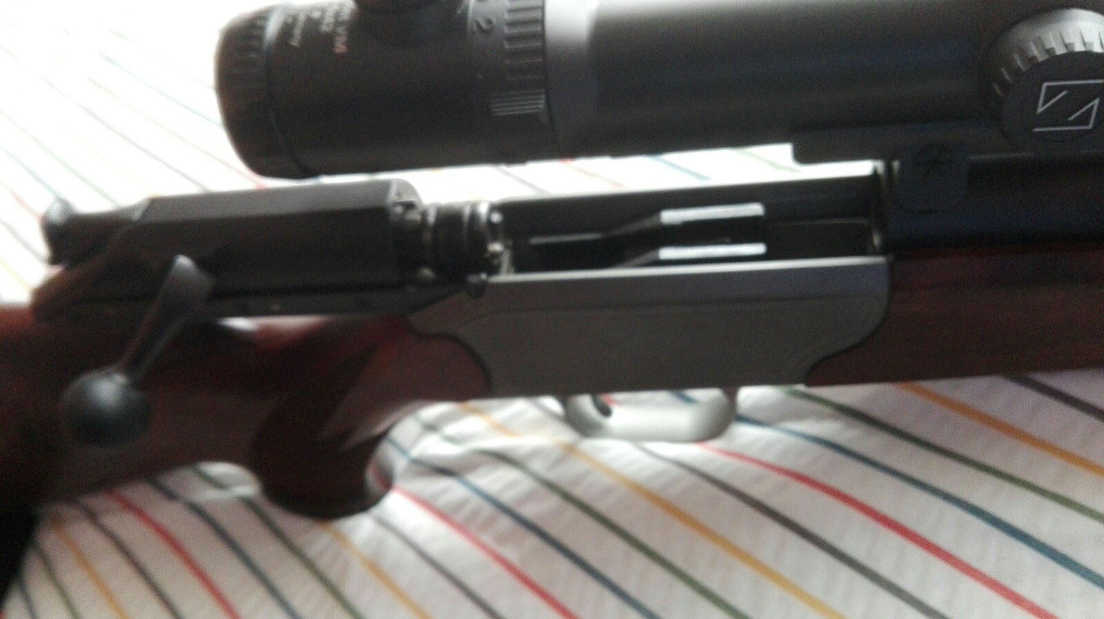 Hola. Un amigo vende este Blaser de lujo, prácticamente nuevo. Con monturas Blaser de carril y visor Zeiss de punto rojo. Está en Asturias, y pide 2500€.