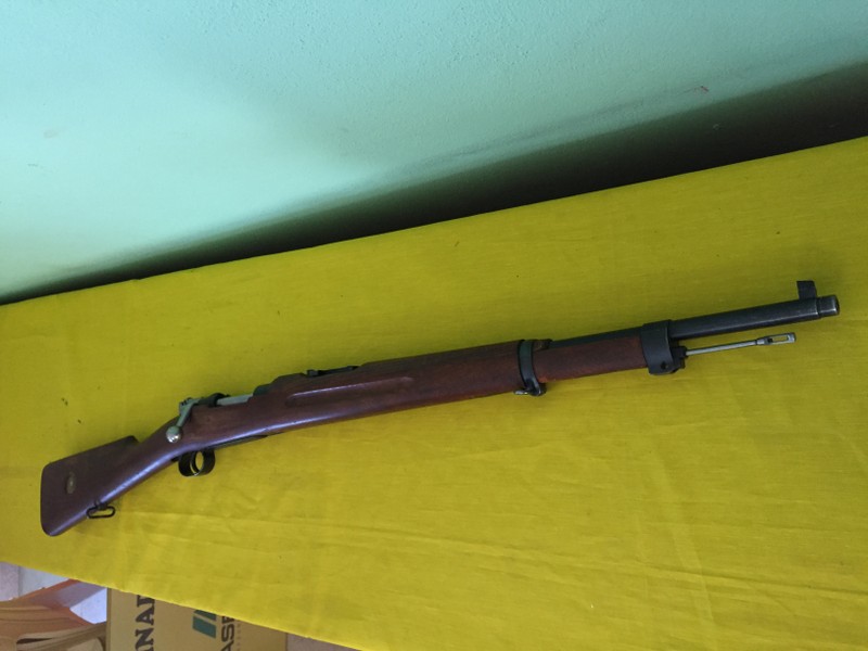 Magnifica arma, yo tengo a su abuelo largo ( de 1899 ) que nunca a dejado de darme satisfacciones. Ademas con el cerrojo curvo, que abre opciones de dotarlo de mira óptica, un gran binomio rifle-cartucho, hacia ademas bastante tiempo que no se veía uno por aquí. En fin una buena oportunidad.