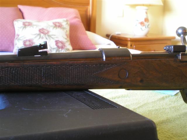 Hola: Pongo en venta , ademas del "Gredos", este otro Santa Bárbara en calibre 308, modelo Luxe, con una maderas fuera de lo común en estos rifles. El arma esta en perfecto estado de funcionamiento, pero con uso para caza del anterior propietario por lo que tiene algunos arañazos en el cañon ,deposito de munición, etc..Tiene por contrapartida el habérsele modificado las miras, dotándolo de alza micrométrica LPA y punto de mira de fibra.Con ello se soluciona el problema de las miras originales excesivamente bajas, mejorando enormemente el encare y precisión de miras y permitiendo por la altura tirar con bases puestas sin visor.Esta operación en el armero valió ,algo más de 200 euros.Las maderas están al aceite con linaza, aunque admite alguna mano más, al gusto del propietario, antes de acabarla con cera si se quiere.De la calidad y construcción de estos rifles poco más hay que decir.El arma va sin las bases que aparecen en alguna foto.