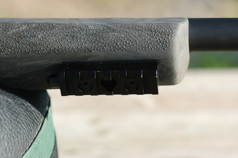 En este caso "detalle" del carril picatinny que la culata lleva en la parte anterior y al cual, en mi caso, le instalé un bípode ( que no va incluido en el lote ).