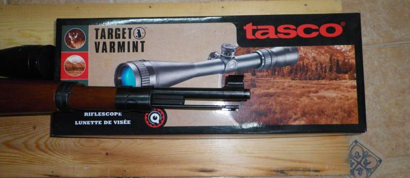En las fotos sale con un visor telescópico TASCO Warmint.