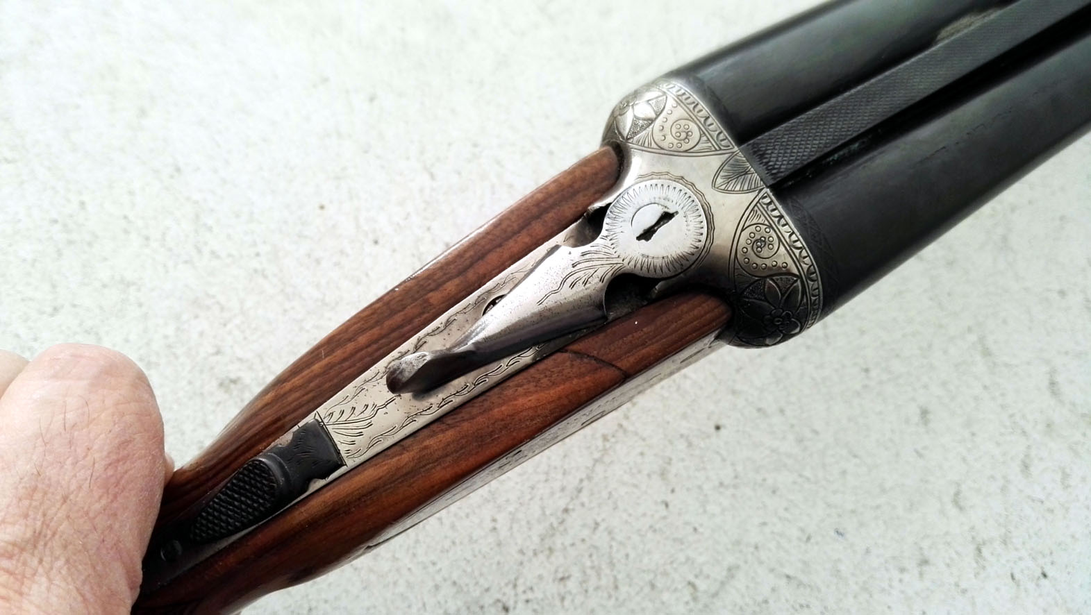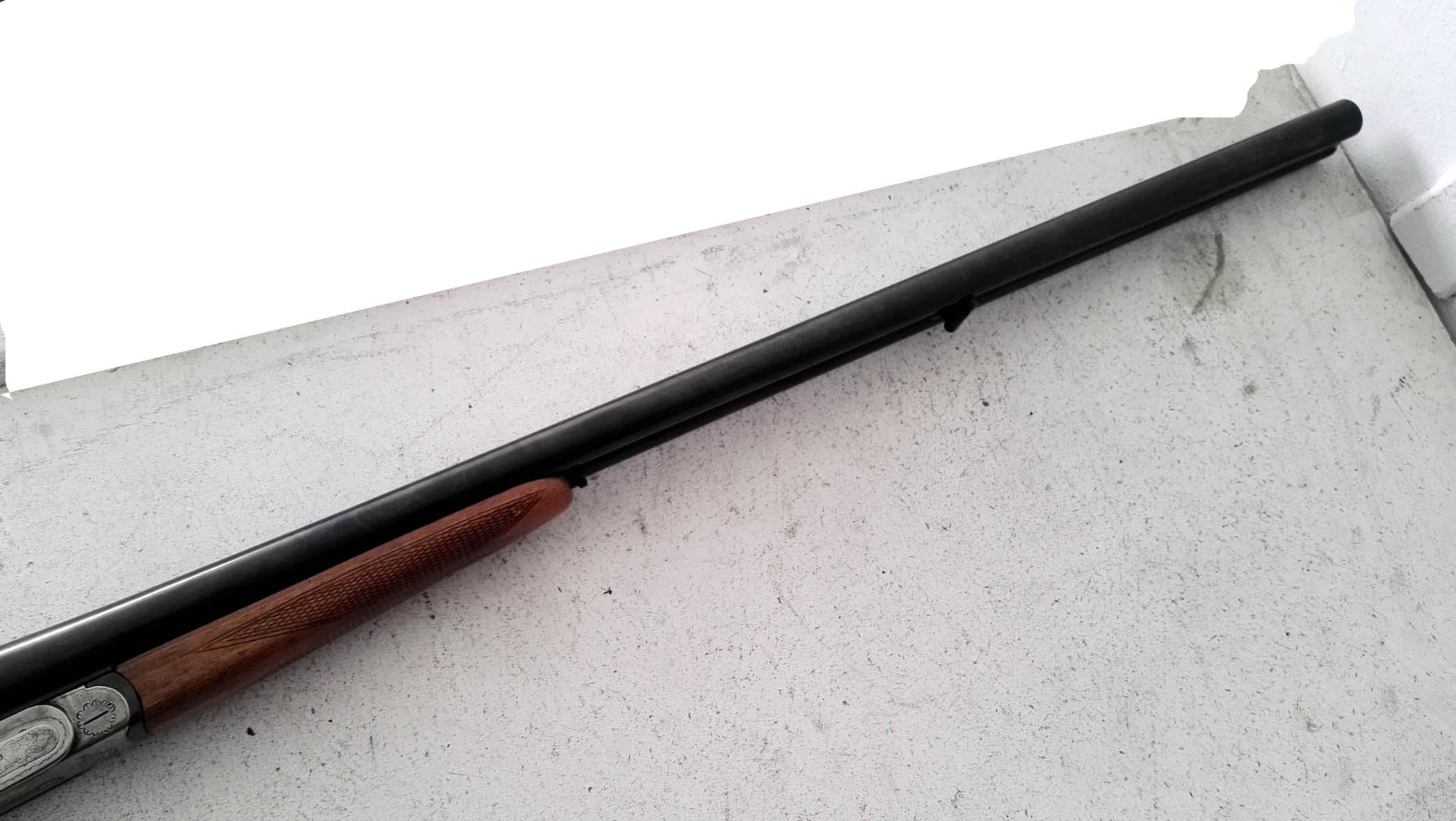 Por último se trata de una escopeta paralela de pletina corta y calibre 12. Se puede ver en las fotos su estado es regular pero en uso perfectamente. Yo creo que trabajando un poco la madera quedaría perfecta, pues el metal está muy bien, pavón casi 100% y sin óxidos.