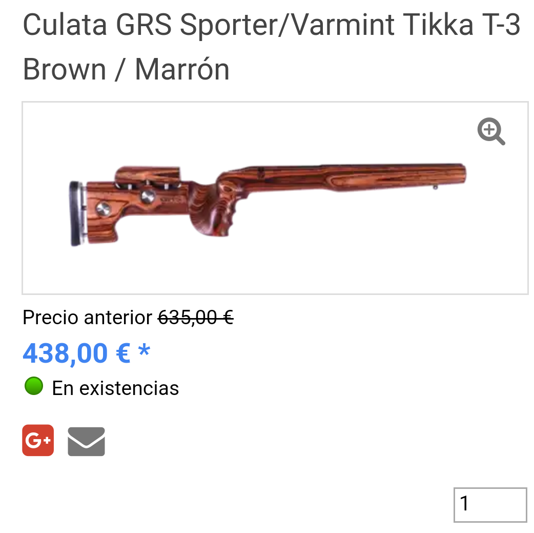 Se vende tikka t3x super varmint calibre 300 winchester magnum. viene con base original tikka, culata tipo varmint con carrillera regulable y empuñadura y guardamanos intercambiables y bola del cerrojo sobredimensionada.Comprado nuevo hace meses. Se vende por lesión de hombro. Por favor no ofertas ridiculas o absurdas.precio 1.200€ rifle con culata original. Posibilidad de vender tambien con culata de madera laminada grs sporter varmint precio 1.700€ Telf contacto 722165201